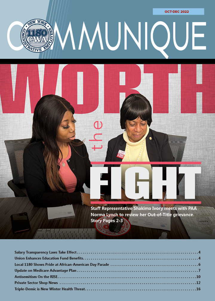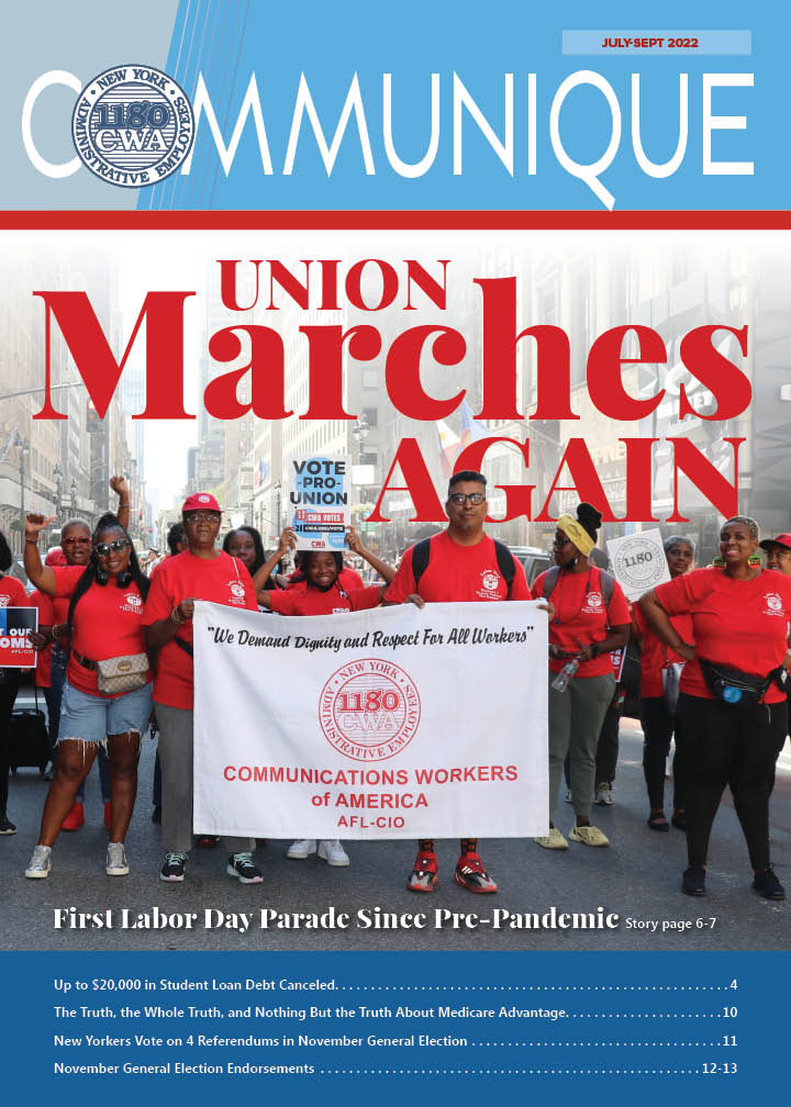 CWA Local 1180’s quarterly magazine, the Communique, has consistently garnered top awards in the Metro New York Labor Communications Council and the International Labor Communications Association contests. Competing against some of the country's best labor publications, the Communique repeatedly stands out in categories for both writing and graphic design, while Local 1180's outreach campaigns and social media programs take the highest of honors.